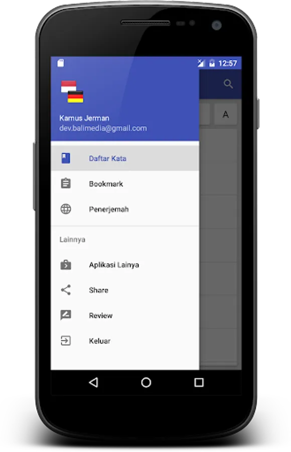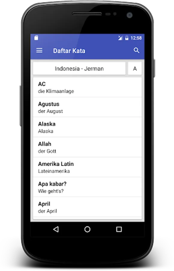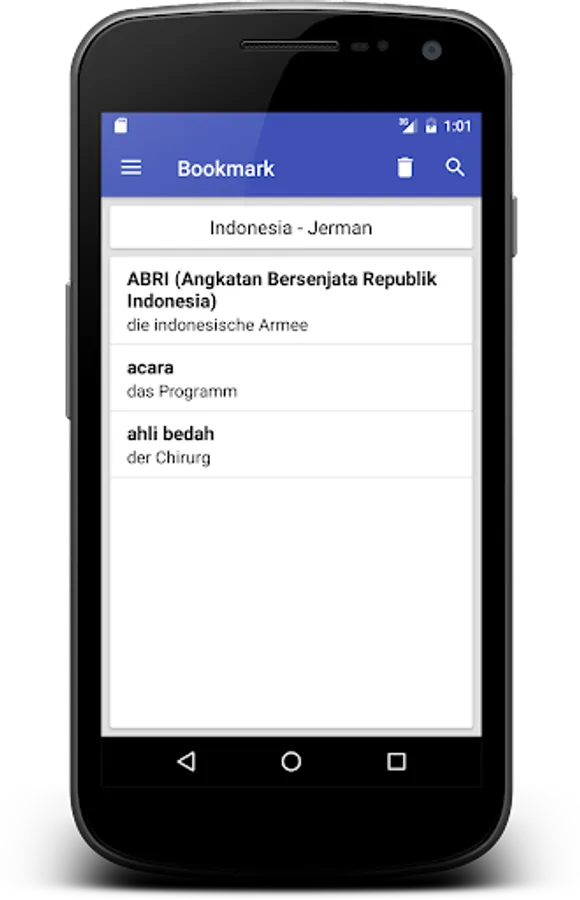 German language dictionary application Indonesian Indonesian and German, can be used offline and online translator feature.
