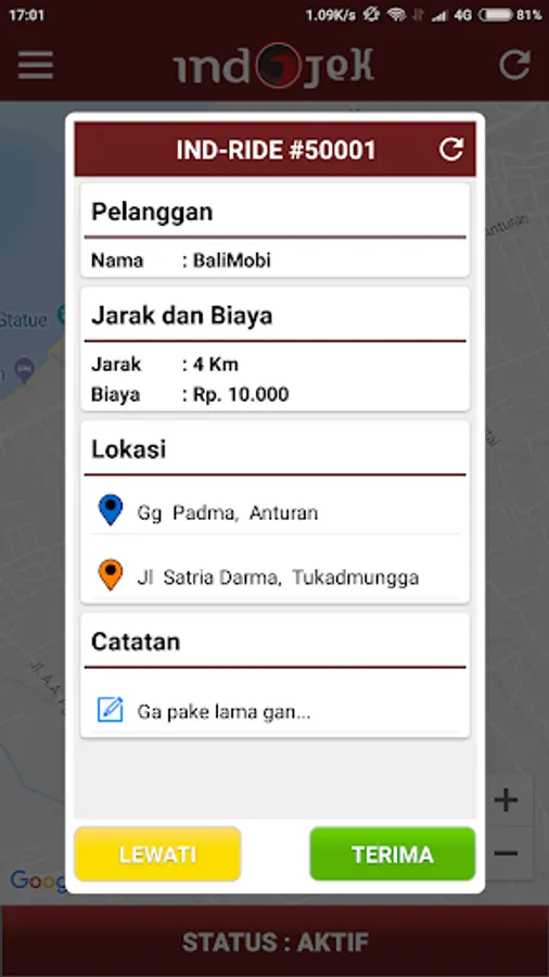 Aplikasi ini merupakan aplikasi untuk driver ojek online Indo-Jek. INDO-JEK adalah perusahaan di Indonesia yang menggunakan teknologi berbasis aplikasi untuk memberikan kemudahan akses bagi penyedia jasa dan pengguna jasa dalam memesan ojek, taxi, pengiriman barang, pemesanan makanan, belanja serta rental. INDO-JEK bermitra dengan para pengendara ojek dan taxi lokal guna menyediakan layanan ojek online terpercaya dengan tarif terjangkau