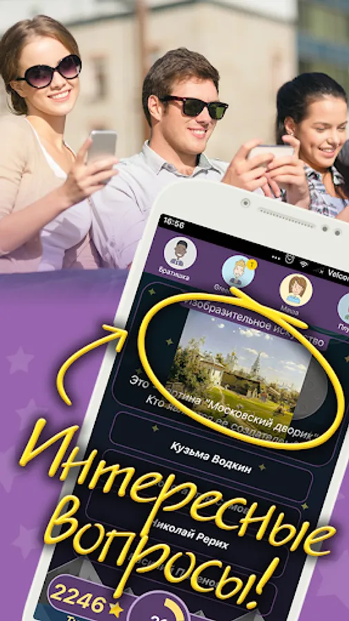 Questions in the game on a variety of topics. For each question offered four possible answers, but only one of them is true. Try to answer as quickly as possible and correctly. For the response speed of accrued points. For correct answers are awarded coins and prizes.