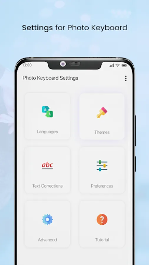 - Photos: You can select the photo from the app collection, select your favorite photo from the camera or phone gallery, and set it on the keyboard background.