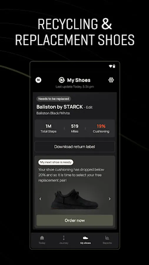 - Initiate the process to receive a pair of replacement shoes or recycling of the worn shoes.