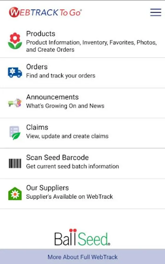 Ball Seed Company WebTrack To Go® Mobile App