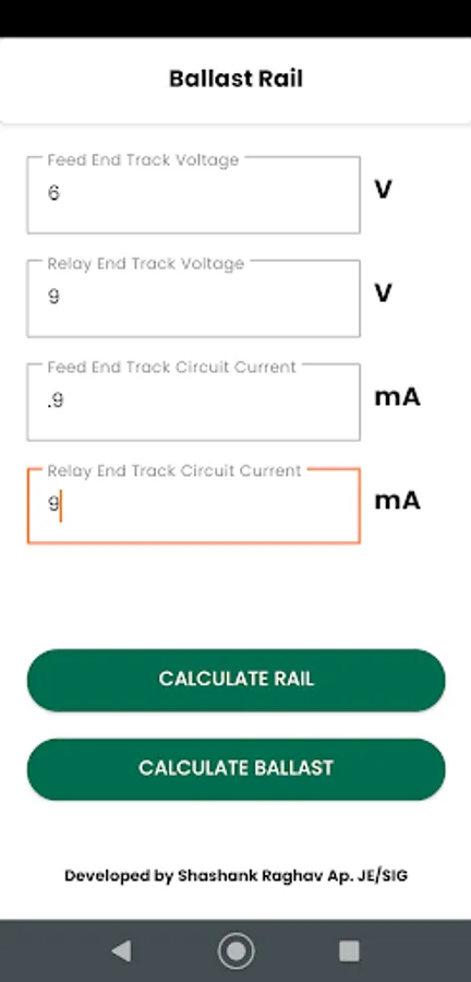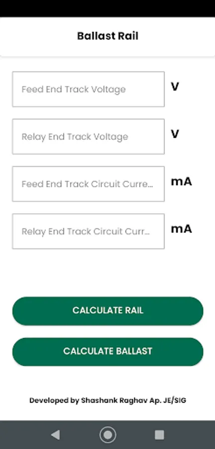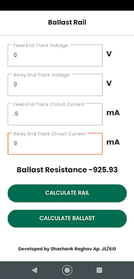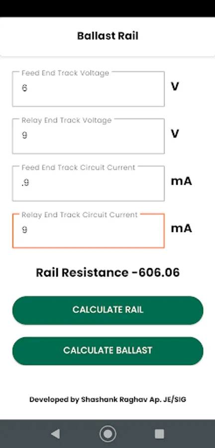 App Designed for calculating accurately Ballast & Rail Resistance Accurately in Railway S&T Department . Moradabad Divison for the ballast and rail resistance calculations efficiently