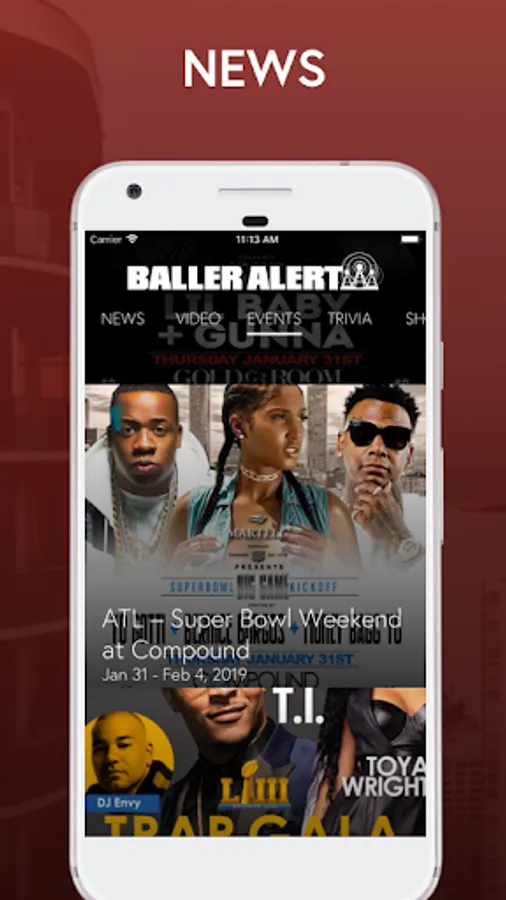 Receive real-time baller alerts (push notifications) when your favorite celebrities step into the hottest parties in your city.