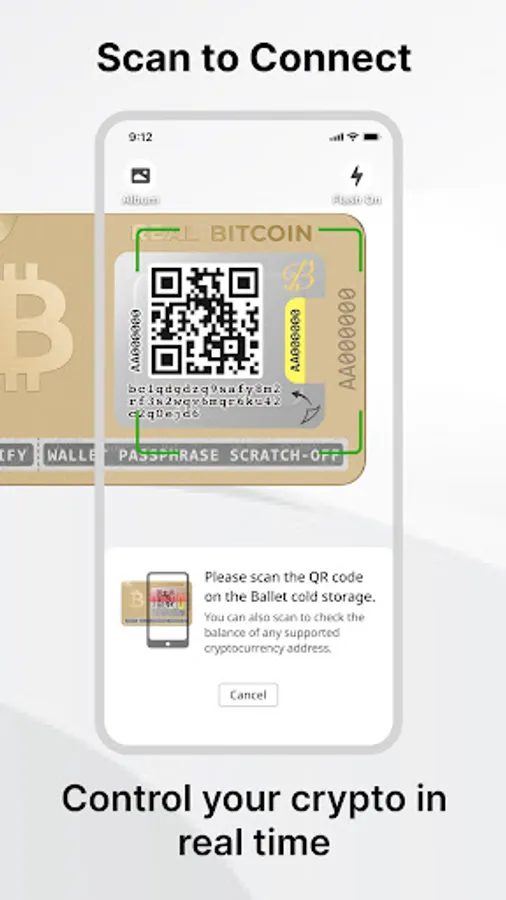 Scan the QR code on your Ballet product to start using the app. There is no need to register an account or go through KYC procedures.