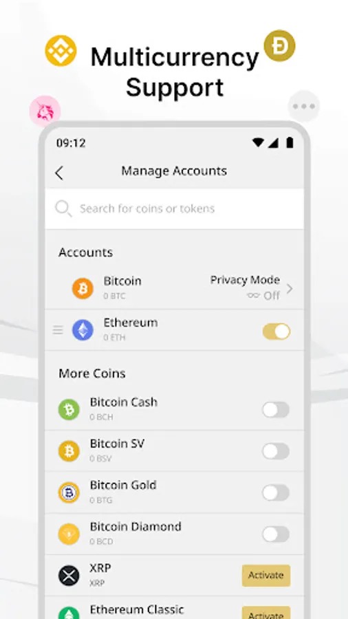 The app allows you to activate use of multiple cryptocurrencies on your Ballet product, allowing you to deposit, store, and send more than 50 kinds of cryptocurrencies. Please note: some cryptocurrency activations may require an additional fee.