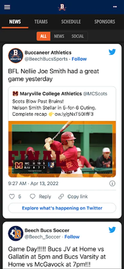 The Beech Buccaneer Athletics app is provided and operated by Beech High School and features LIVE scoring, schedules, news updates, and rosters for all participating BHS Buccaneer teams and organizations.