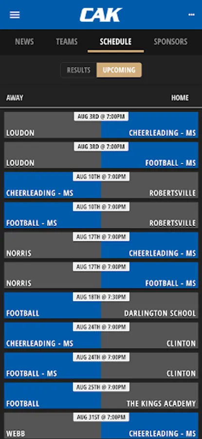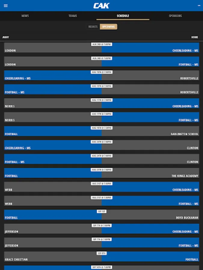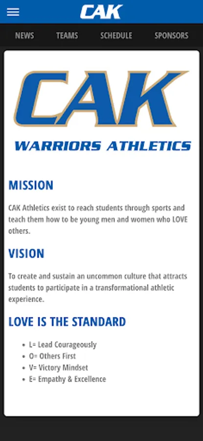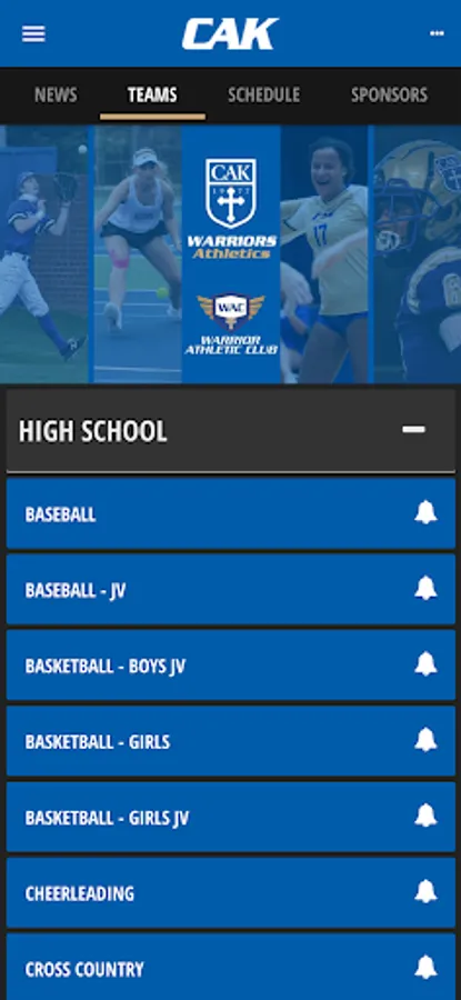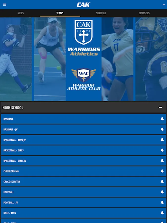 The CAK Athletics app is provided and operated by the Christian Academy of Knoxville and features LIVE scoring, schedules, news updates, and rosters for all participating CAK Warriors teams and organizations.