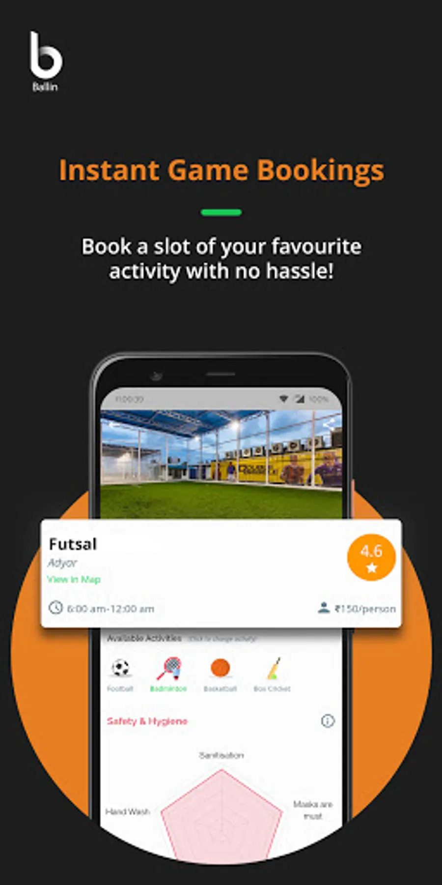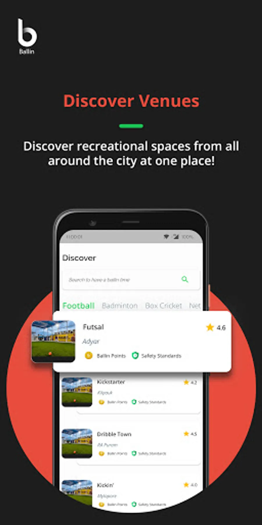 Discover, explore and book your go-to recreational spaces all around the city without any hassles. Earn Ballin points with every booking to buy exciting coupons and goodies. Be a part of our community and meet other ardent sports lovers - only on the Ballin App.