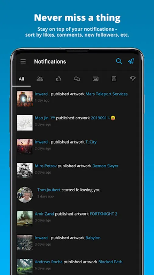 The ArtStation App provides an awesome browsing and discovery experience, enabling you to view thousands of artworks by the world's best artists. Like artworks, and follow your favourite artists.