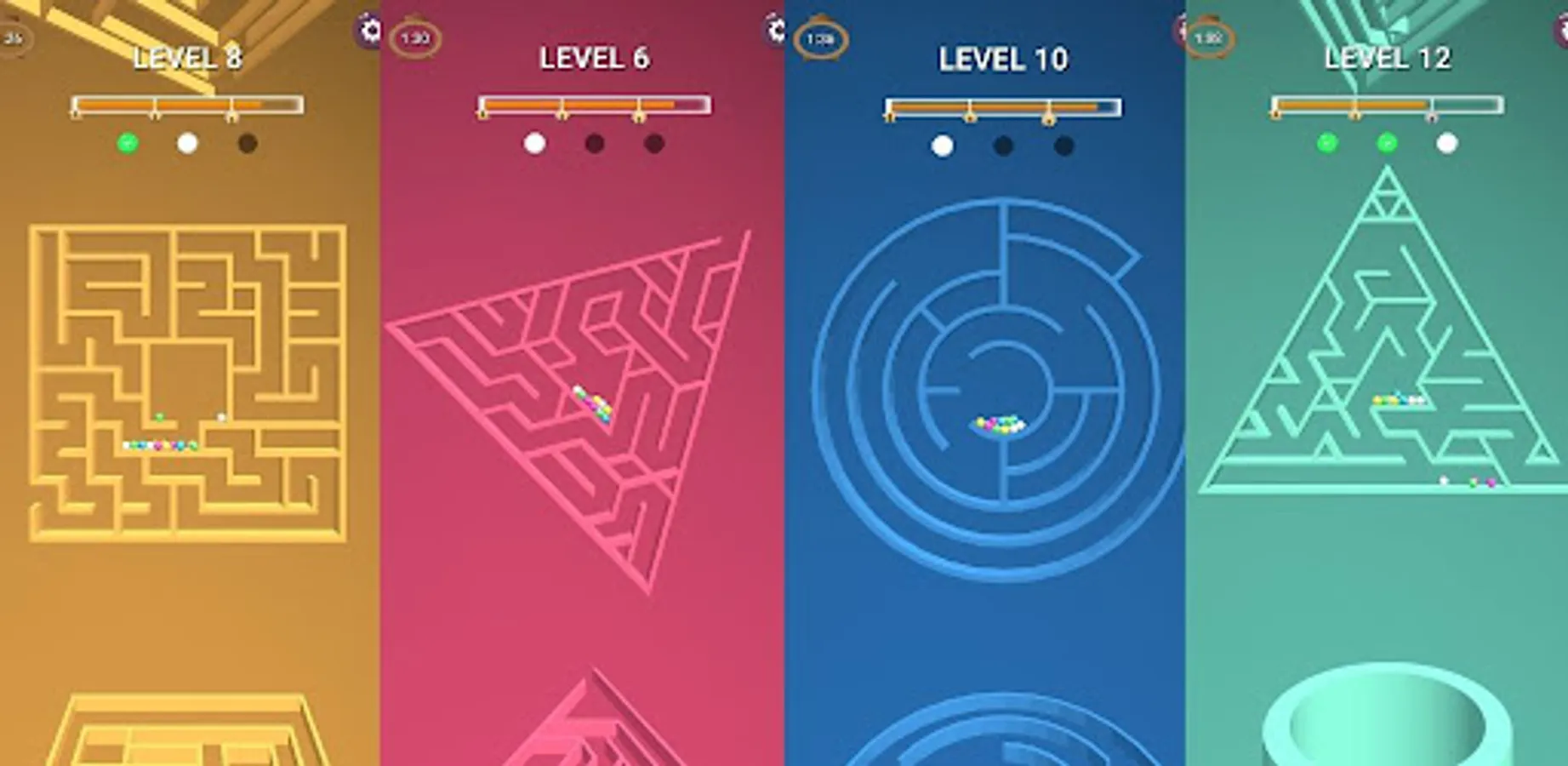 Ball Maze Game is rotate Puzzle game out there. Rotate the maze to move balls out of maze to complete the level. You need to move balls within some time limit to complete the level, if you fail to move balls in given time then you have to watch ads to solve the level.