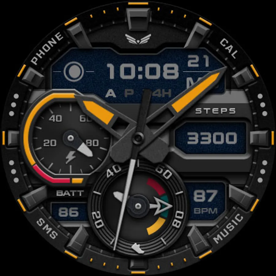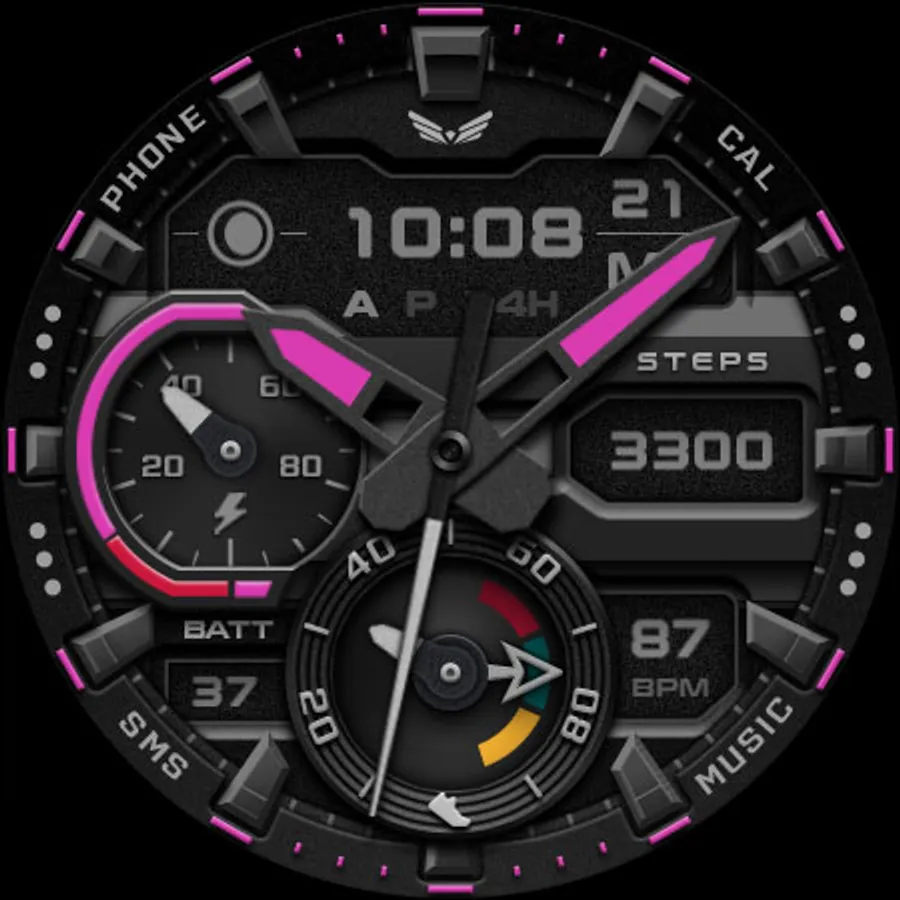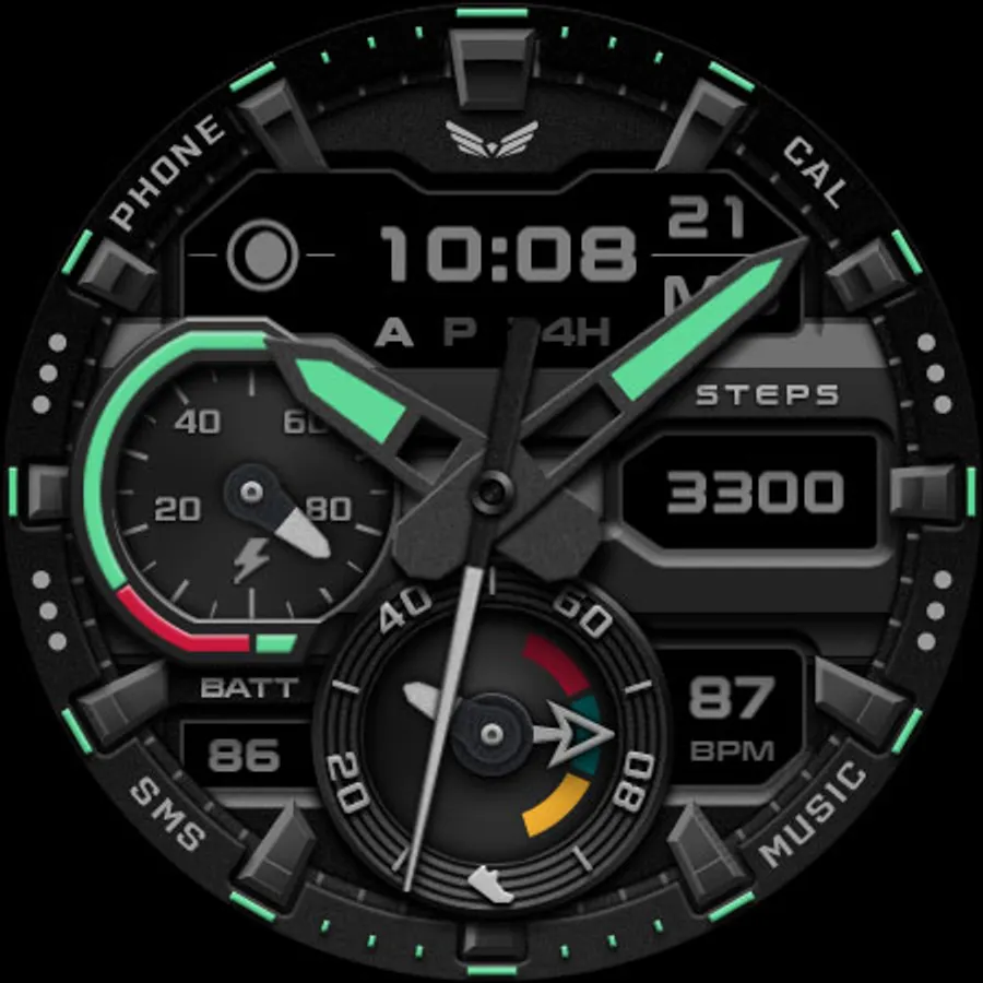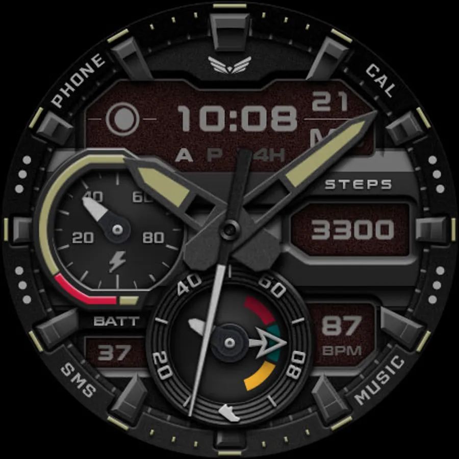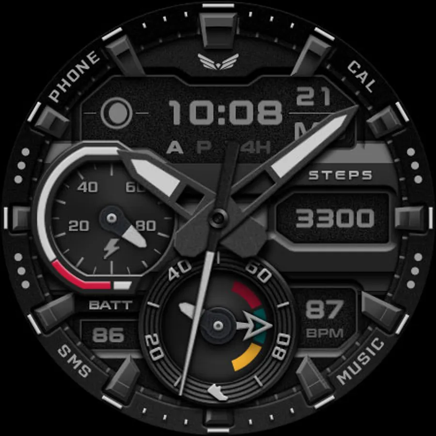 BALLOZI STEALTH FORTO is a modern, stealthy, military, sporty and masculine hybrid watch face for Wear OS. It is the stealth version of Ballozi Forto with dark LCD and gray data.