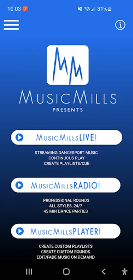 Your Dance?... Music your way – That’s the beauty of MusicMills. Designed by dancers for dancers to be your personal music director! Organize music, locate songs quickly, set & save cues, easily change tempo and create rounds/parties with specific song lengths and breaks with just a few swipes.