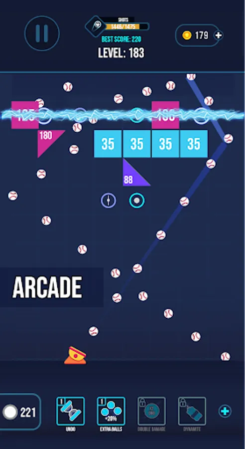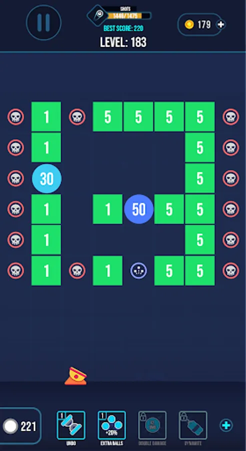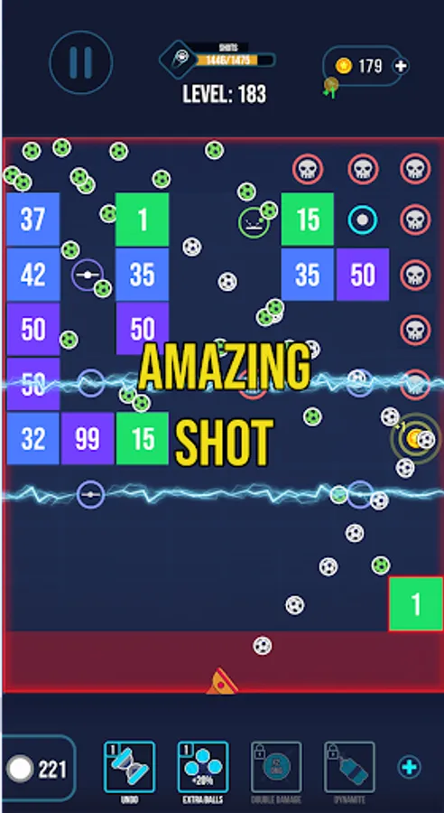 - You can also use power-ups to add more balls, multiply their damage or reset the shot.