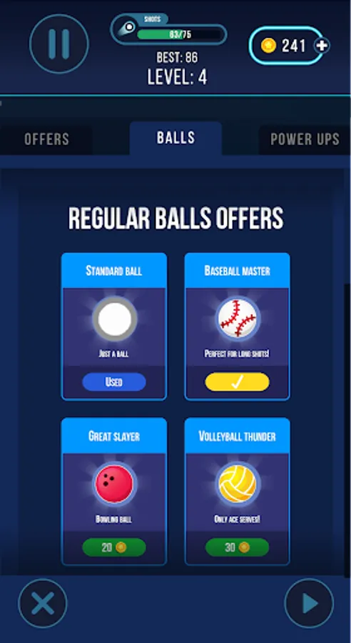 - Multiple ball skins to choose from.