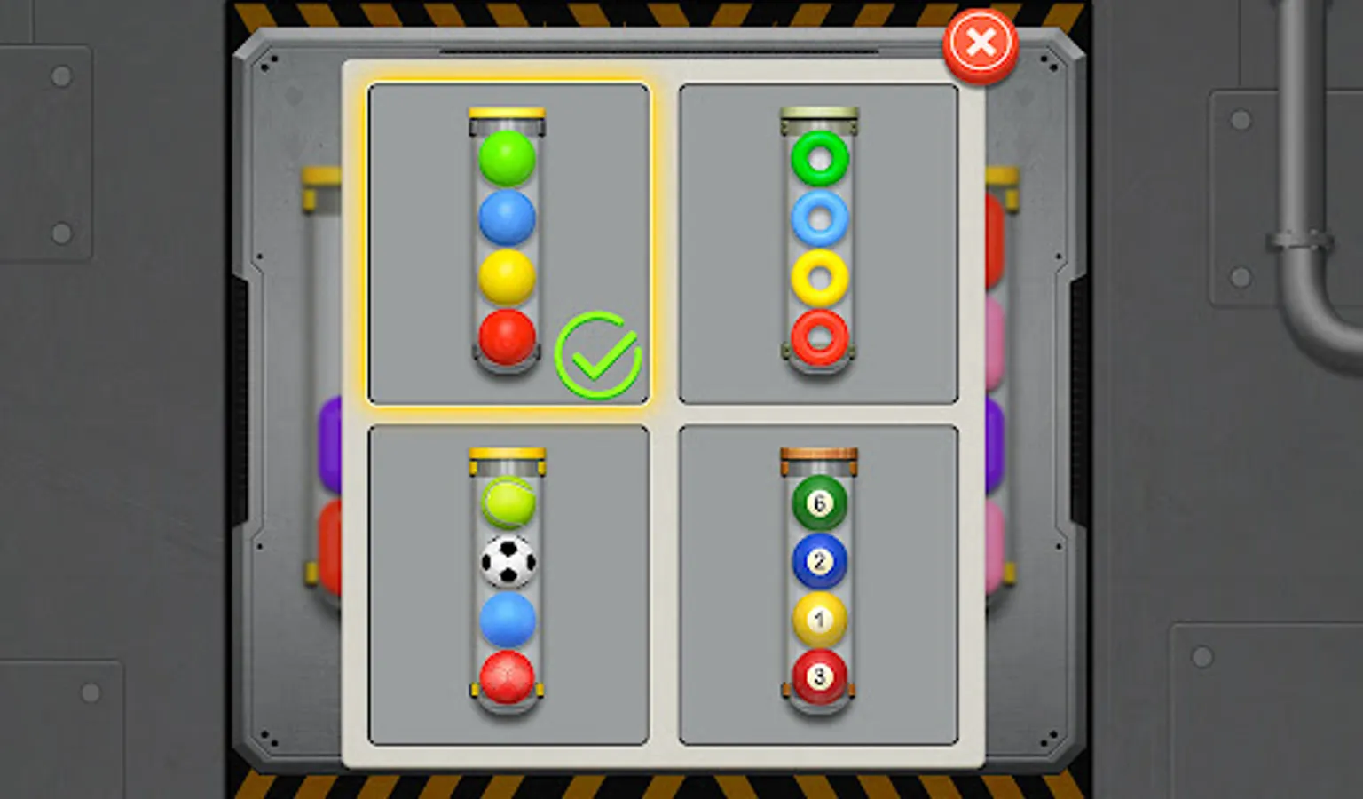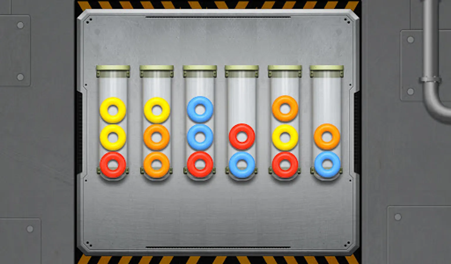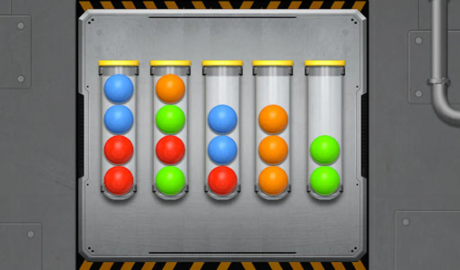 • You can only move a ball to the top of another if they have the same color and the tube has enough space.