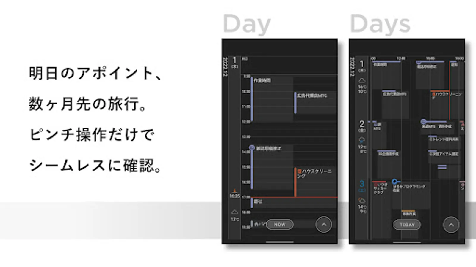 Balmuda's schedule app that is useful for people who have a fulfilling life. Designed to make the most of the portrait screen of your smartphone, you can check seamlessly from today to next year's schedule with just a pinch operation. Easy to link with other services such as Google Calendar.