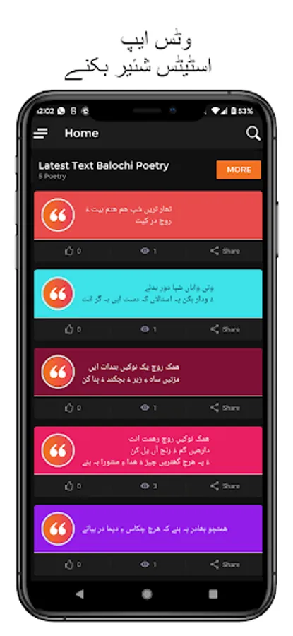 Balochi Poetry Brought for user Balochi different poets shayari from Balochistan and with text and Photo shayari design you easily copy text and put there status also Balochi shayari Photo to upload there status and also make by own there poetry.