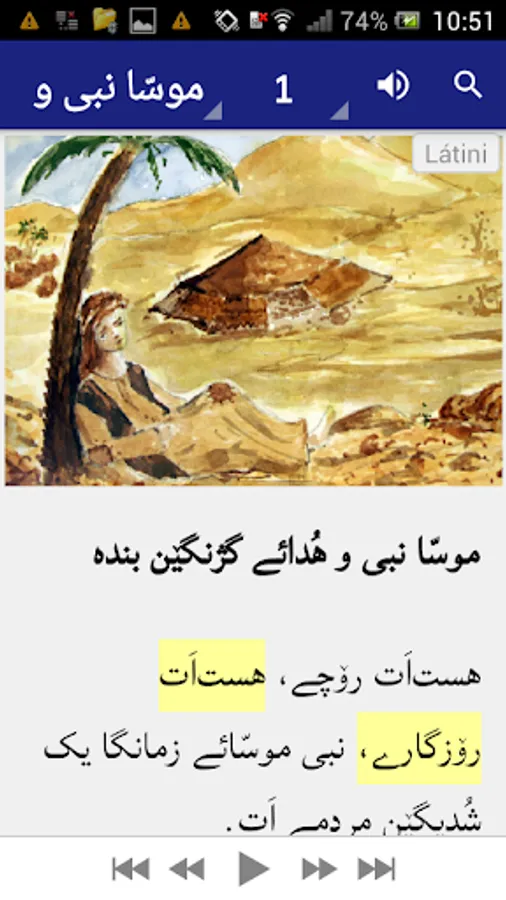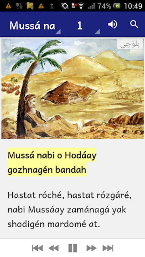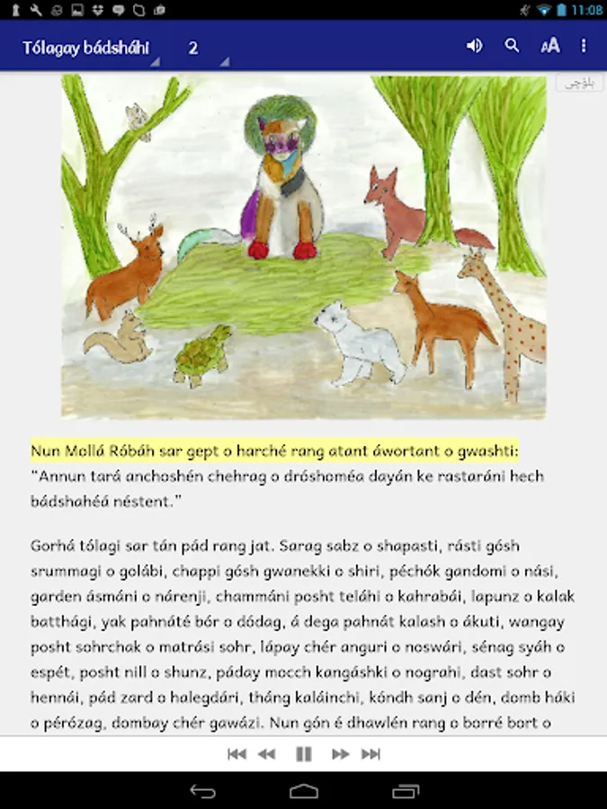This app contains 10 Balochi folktales and stories (text and audio) in Latin and Arabic script. The stories are traditional folktales rendered into the standard Balochi language by Aziz Dadiar and Carina Jahani. Mahsa Mir is the illustrator of the book. In the tales, you meet kings and queens, prophets and shaikhs, thieves and robbers, dragons and lions, cows and sheep and a lot of other characters. All of the stories are part of the Balochi cultural heritage that should be passed on to your children and grandchildren. This app is a gift to all Balochi language lovers and will be updated on a regular basis with more tales and stories. Enjoy!