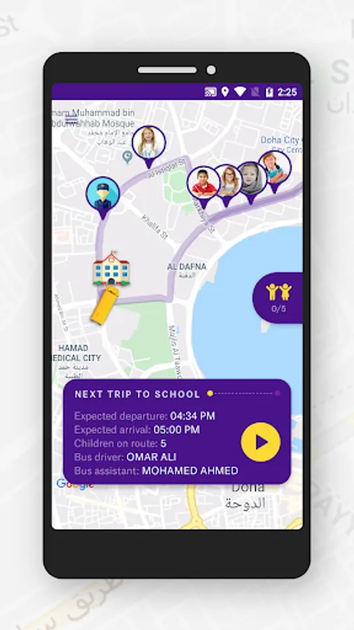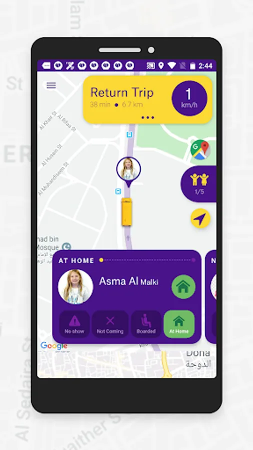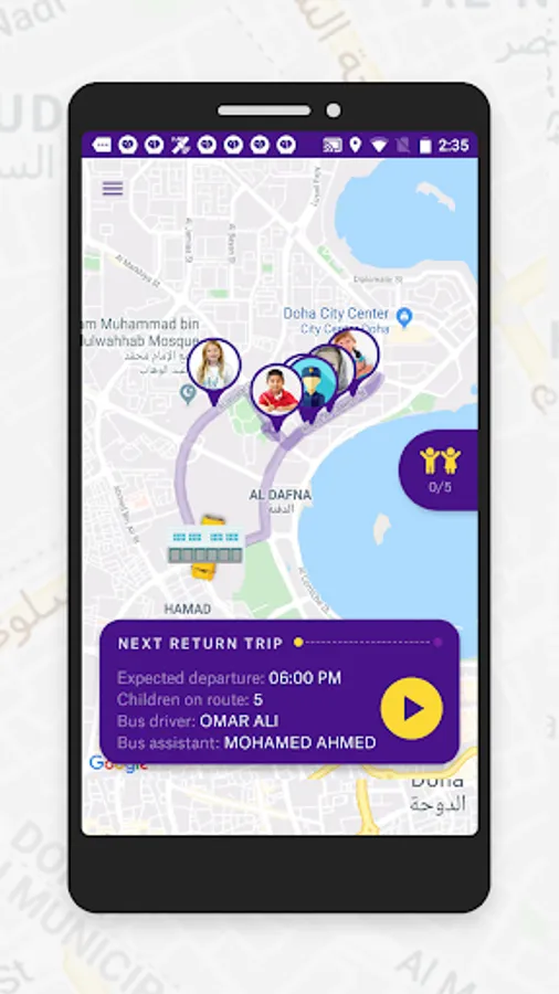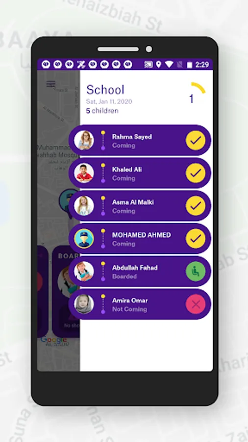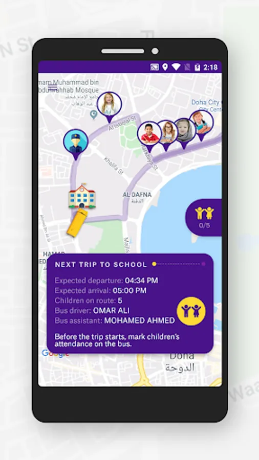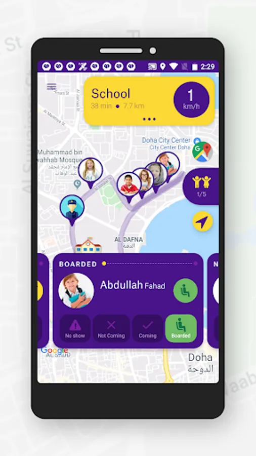 Baloora Crew allows drivers and assistants to keep track of how many kids will join each trip and to easily change the status of each kid during trips and turn to turn guidance.
