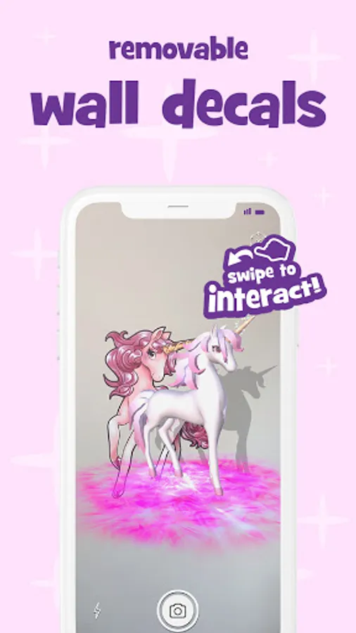Bring your child’s wall to life in a whole new way. Using your smart device, your child can place this life size unicorn on the floor of their bedroom and control her movements with a swipe of the screen! Watch as she prances, bows and sparkles! Take photos or videos and share with friends!
