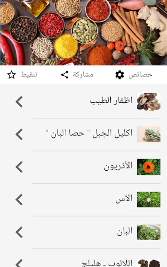 In this age of intractable diseases and epidemics, we are pleased to put in your hands an application that contains a large collection of spices, spices, herbs and certified plants, whether for cooking and improving the taste of food or for medical purposes.