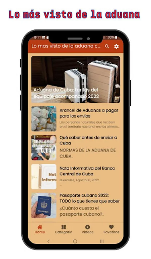 The most seen Cuban customs. With this simple application you will be able to find the most searched and read topics by everyone from the island and off the island and always be aware of changes that may occur at customs for your next visit to the island.