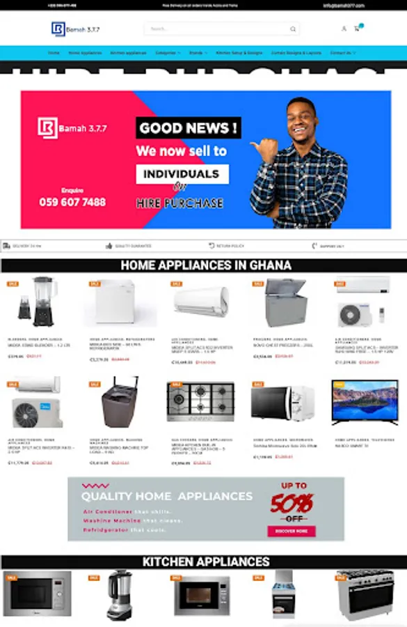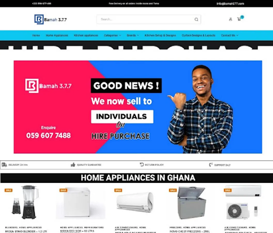 Choose BAMAH3.7.7 for all your electronic product needs in Ghana. With our extensive range of home appliances, flexible payment options, corporate sales services, kitchen design solutions, and curtain designs, we are dedicated to providing exceptional products and services to enhance your lifestyle. Trust us to deliver quality and satisfaction every step of the way.