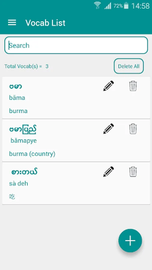 BAMA Learn Burmese Do It Yourself Flashcard will assist you in learning new vocabs of any languages (as long as it is supported by your phone). Add new vocab, pronunciation and the meaning as a new card, and play it OFFLINE on your phone anytime, anywhere. Visit our website BAMALearnBurmese.com to find more materials.