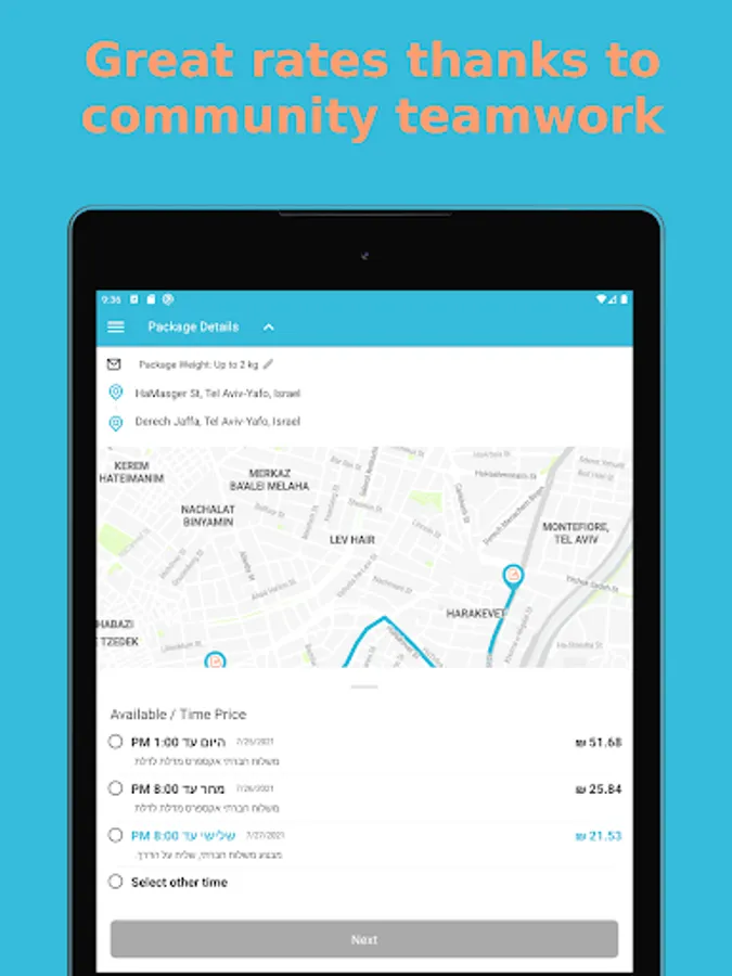 Here at Bambizz, our couriers' offers allow you to choose the best one from a pool of options. They'll offer you local service at a rate that reflects their availability and ease of delivery in real time, within a time frame that works for you both. If you think about delivering a package as part of people's everyday life in a community, you realize it doesn't have to be expensive. Bambizz is here to help build that community with you.