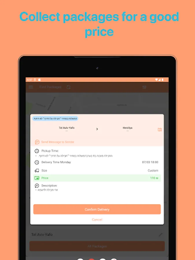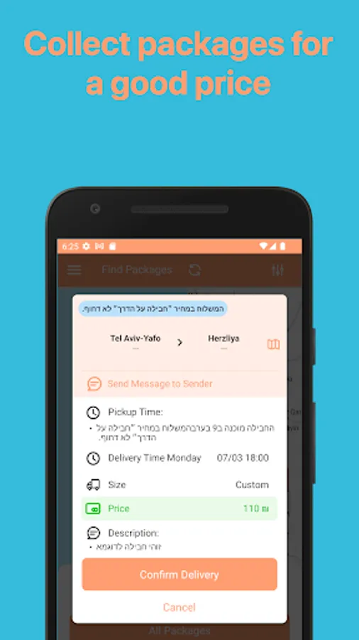 Sign up as a courier on our site or app, and verify your phone number via SMS. You can immediately begin making delivery offers for posted package requests that are relevant for you. When a client accepts your offer, you'll receive a notification. Accept the request, and you'll be sent the sender's phone number to coordinate a pickup time that works for you both.