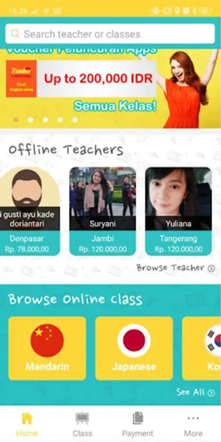 2. Terdapat video materi bimbingan belajar, materi yang interaktif, tes bahasa berstandar internasional, serta kelas yang dibimbing oleh guru bahasa berpengalaman.