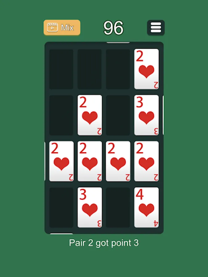 iPairs is a new type of poker card game. Two identical poker cards can be merged to achieve higher points, flexible, and mind twisting!
