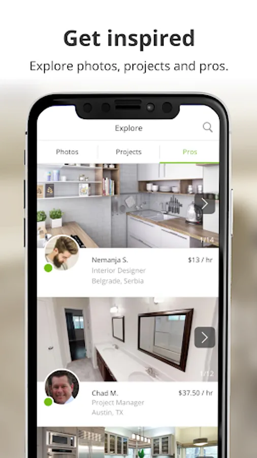 - Browse pre-vetted and interviewed architects, interior designers, and 3D artist Pros to work on your project.