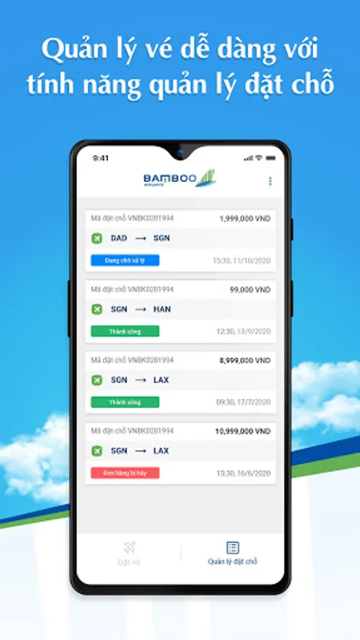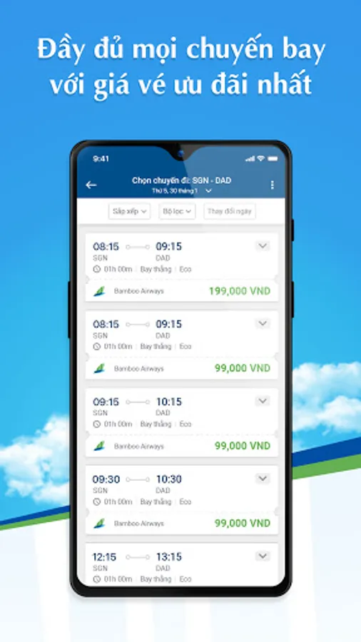 The booking application will assist you to book cheap flights from Bamboo Airways as well as other airlines within 90 seconds. With just a few simple steps and flexible payment methods, you can immediately own a super economical flight ticket.