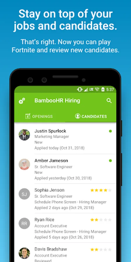 BambooHR Hiring is a mobile recruiting app available for BambooHR Applicant Tracking System (ATS) users.