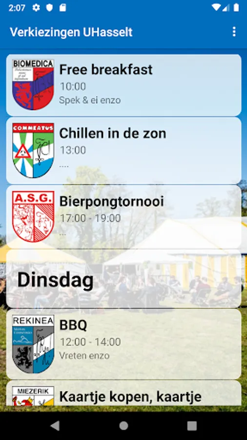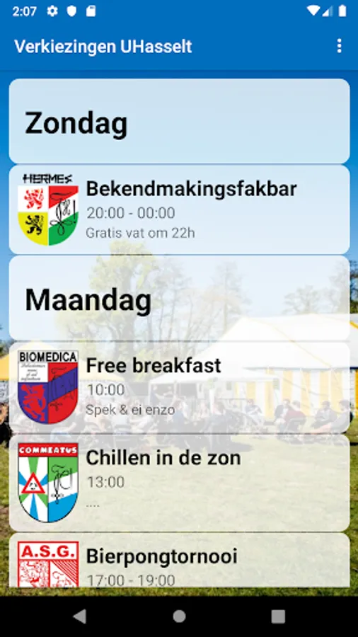 When the elections start, the app transforms itself into the weekly schedule of the meadow so that you always know what to do.