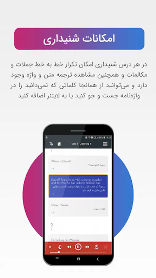 ❇️ امکان دسترسی به متن همه داستانها و مکالمات ارائه شده در بخش خواندن و شنیدن