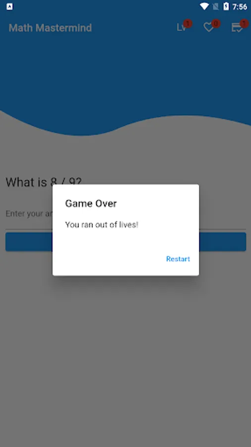 However, be cautious! If you provide an incorrect answer, you will lose a life. You have a limited number of lives, so use them wisely. If you run out of lives, the game is over, and you'll have the option to restart and try again.