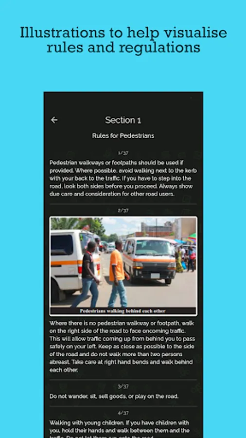 This is the easiest and most convenient way to study and familiarize yourself with the rules in the Zambian highway code.