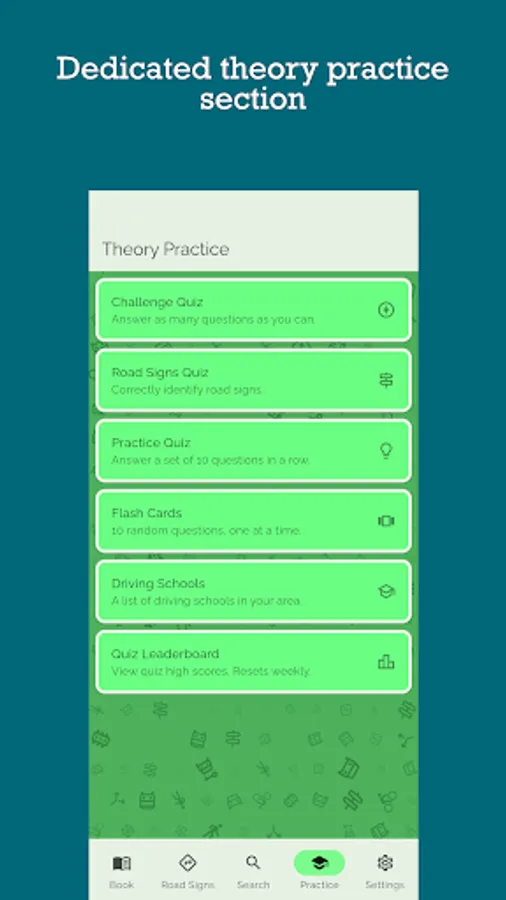 *Dedicated Theory Practice section to help prepare for the theory driving test