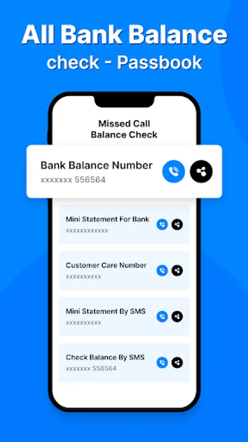 All Bank Balance app provides a list of all Indian banks official balance inquiry missed call numbers. Give a missed call to the official Phone number provided by the bank and get account balance details by SMS.