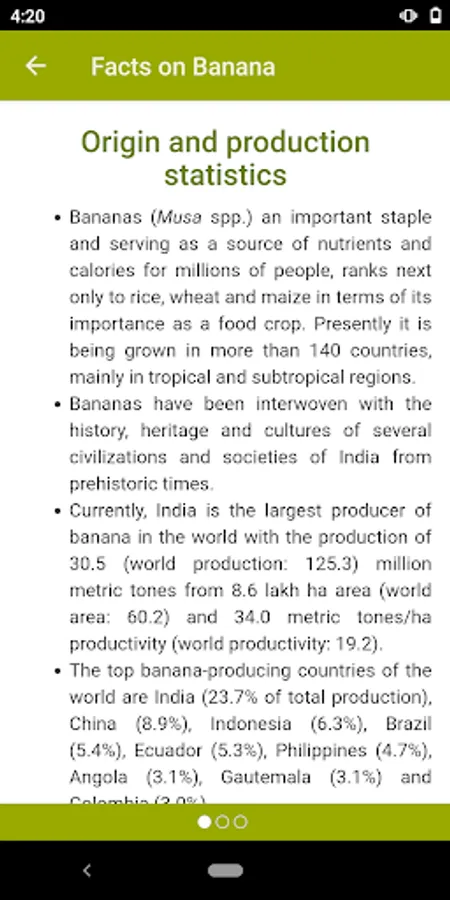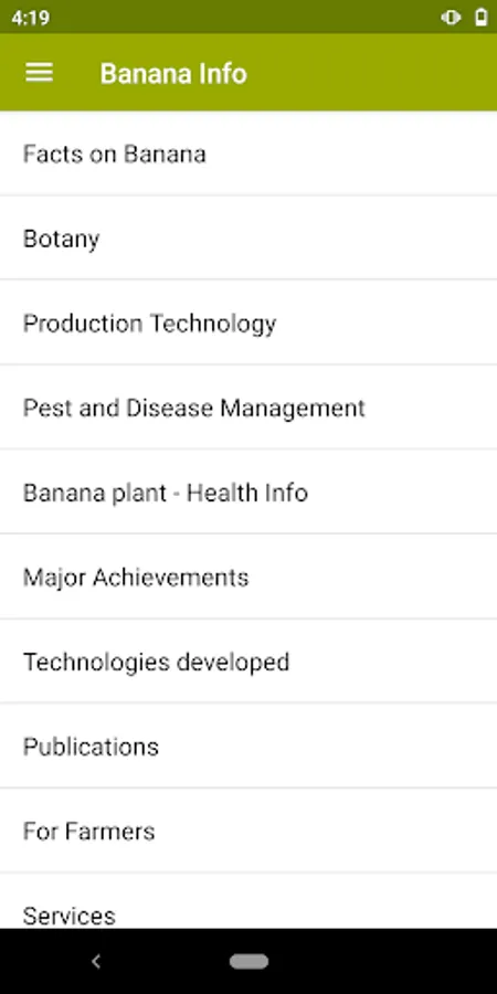 Banana Info is a mobile app that covers Facts on Banana, Botany, Production Technology etc;