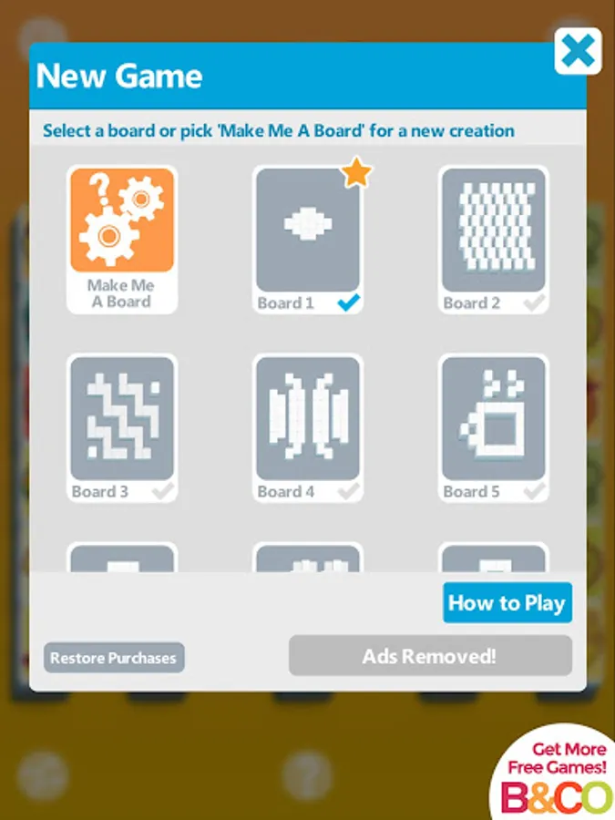 - Endless supply of puzzles with the "Make me a Board" feature.