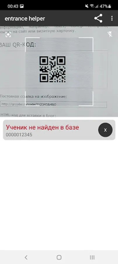 By the way, so that the names of students are displayed when in the water, you can import a database with QR codes in excel format into the application.