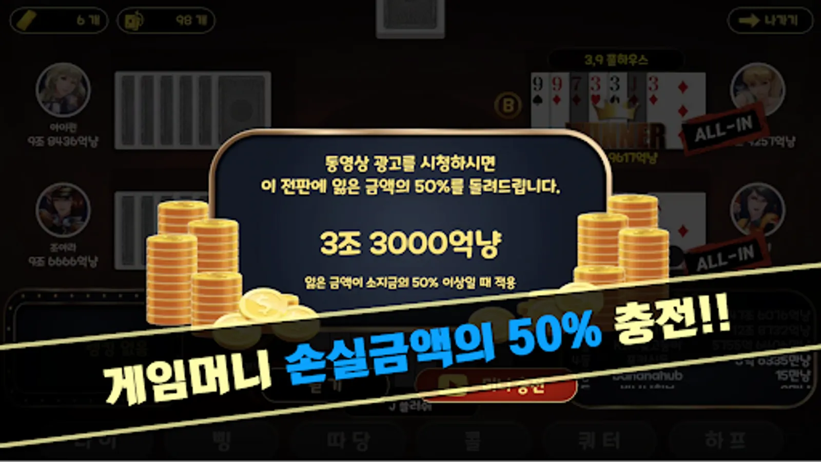 - When 50% or more of the game money is lost in one game, 50% of the loss amount is charged