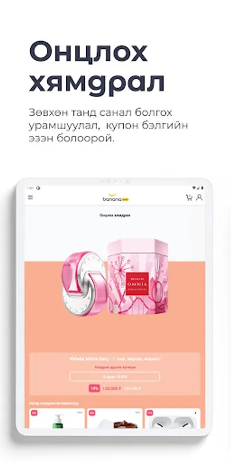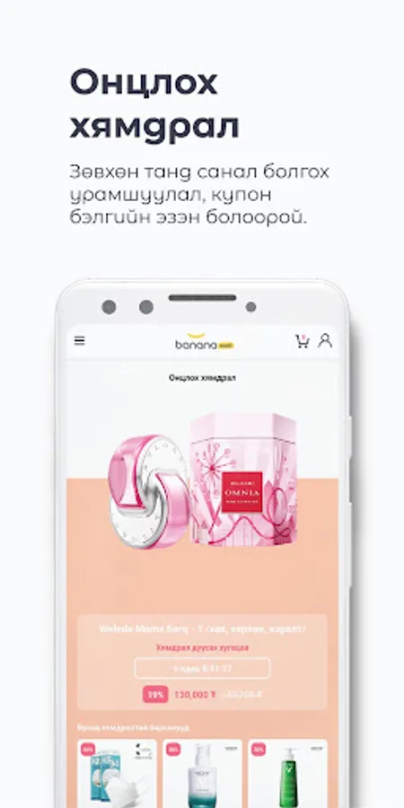 Bananamall.mn нь технологи болон гоо сайхны албан ёсны брэнд, бүтээгдэхүүн нийлүүлэгчдийн нэгдсэн платформ юм. Хэрэглэгч өөрийн хэрэгцээт бүтээгдэхүүнээ онлайнаар хамгийн хурдан шуурхай, амар хялбараар худалдан авах боломжийг олгодог