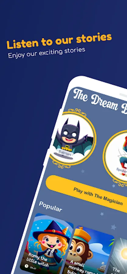 📚 With The Dream Box, explore a vast universe of specially crafted books for kids. Our app offers a plethora of captivating audiobooks that will stimulate the imagination of young readers. The bedtime stories are narrated by a professional voice, ensuring a magical experience for both kids and parents. The stories can also be created and customized with the magician. Then you can listen to it.
