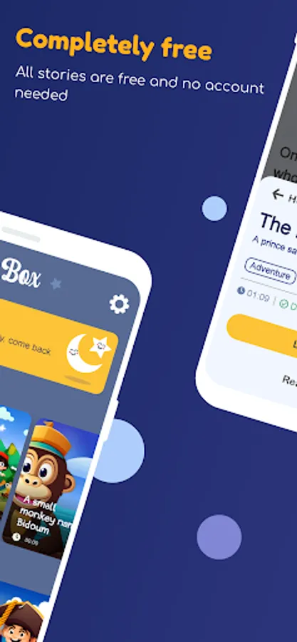 🌛 Bedtime: The Dream Box allows stories to be read even with the phone locked, so your kids don't necessarily have to use a screen. They can be lulled by the tales, and their imagination will do the rest.