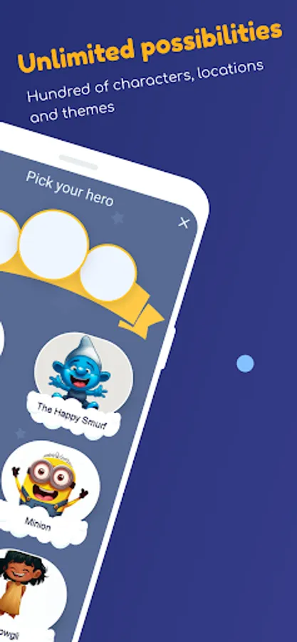 All our stories, even those created by your child, come with a lovely personalized and unique cover. The app is therefore playful and colorful.